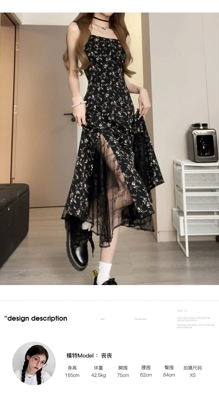 ティーブレイクフランスキキョウ花サスペンダースカートテクスチャ高品質レースステッチサスペンダードレスニッチデザイン 花柄 yingd66694266566