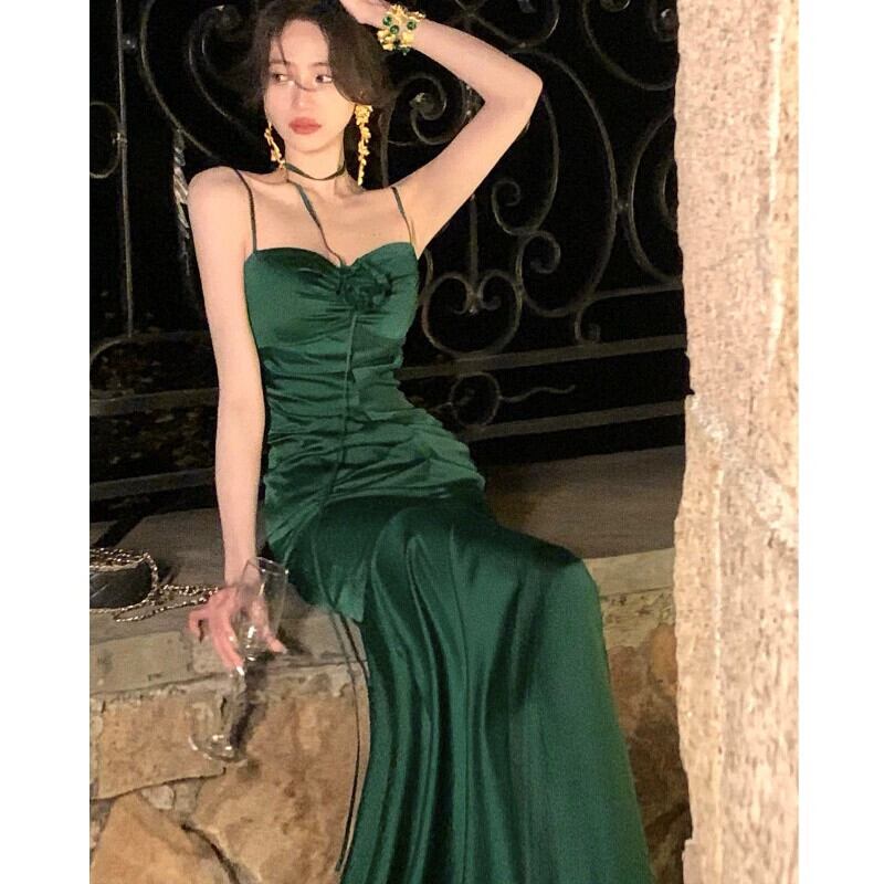 純粋な欲望スタイルのセクシーなスリットドレスハイエンドティーブレイクフレンチサテンサスペンダードレス2023女性新 yingd33364277128