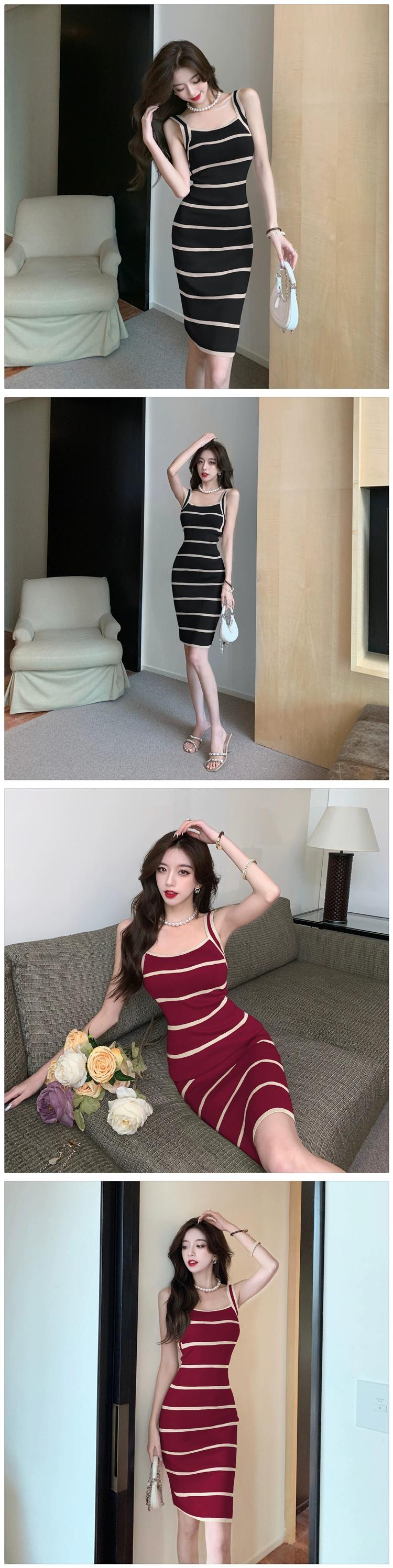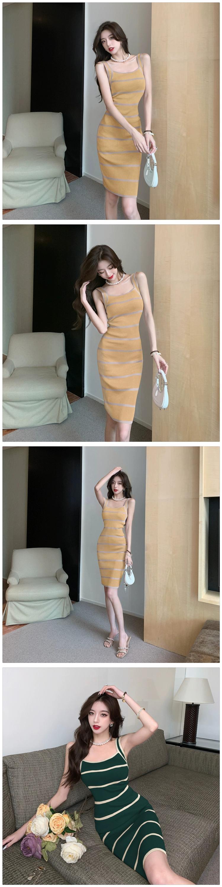 フレンチシックな甘さとスパイシーなスカートの女性のニッチデザイン自己修養のセクシーなバッグヒップストライプニットサスペンダードレス女性 大人ガーリー スウィート キュート カジュアル yingd25020689807