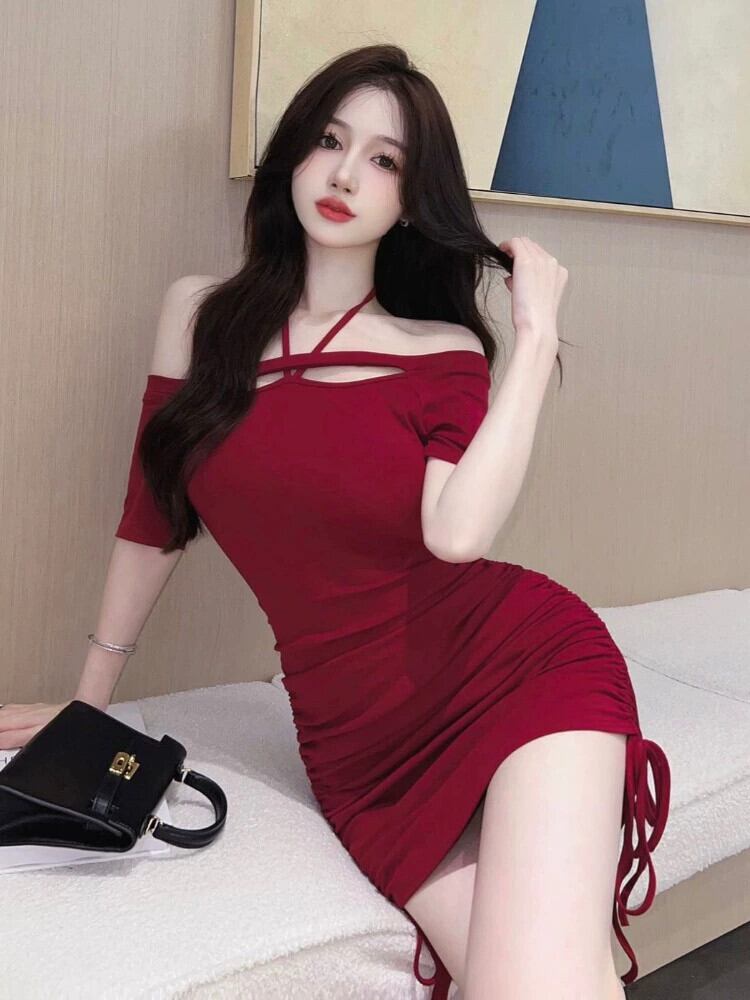 シックな甘辛スカートウエストスリム気質セレブワンショルダー巾着タイトバッグヒップホルターネックドレス女性の夏 大人ガーリー スウィート キュート カジュアル サマー 夏物 yingd38294804528