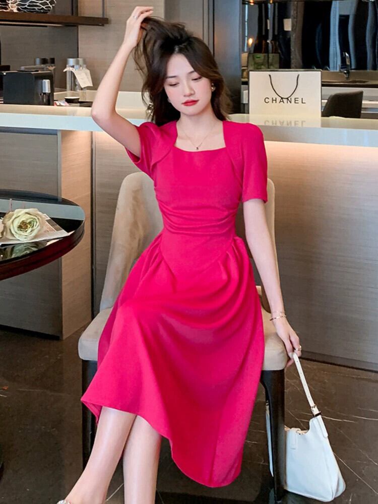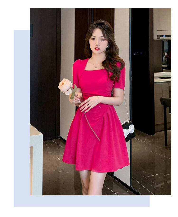 シックでユニークなスカートの質感、小さな四角い襟のドレスを着ているハイレベルな女性の気質の感覚、2023女性の新作 スクウェア yingd54372770423