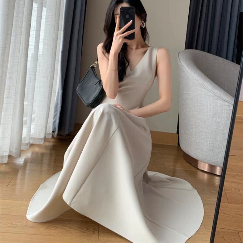 -エンド女性のライト高級気質女神ファンハイエンドセンスフレンチウエストVネックノースリーブドレス2023新しい女性 yingd77671852453