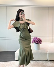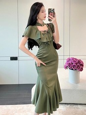 -エンド婦人服、軽くて豪華な気質、有名人のフィッシュテールバッグヒップスカート、高級感のあるウエスト、サテンのドレス、女性の夏 サマー 夏物 yingd41601248216