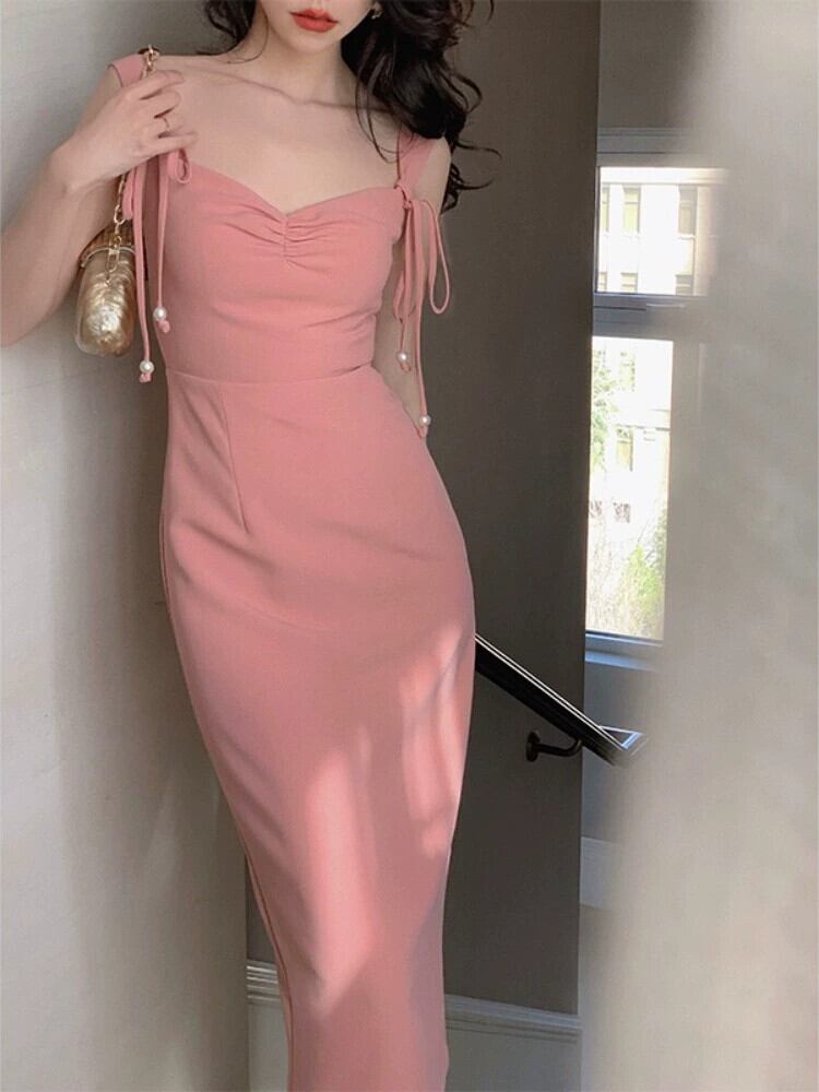 香港スタイルのレトロシックなスカートの女性のニッチなデザイン、自己修養の感覚と上質な質感の細いストラップサスペンダードレス yingd6020455936