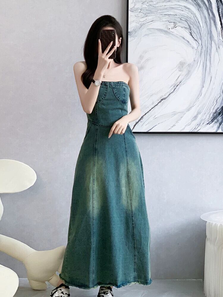 フレンチチューブトップドレス女性の夏 2023 新しいウエスト痩身気質女性のハイエンドデニムドレス女性 サマー 夏物 yingd2687081602