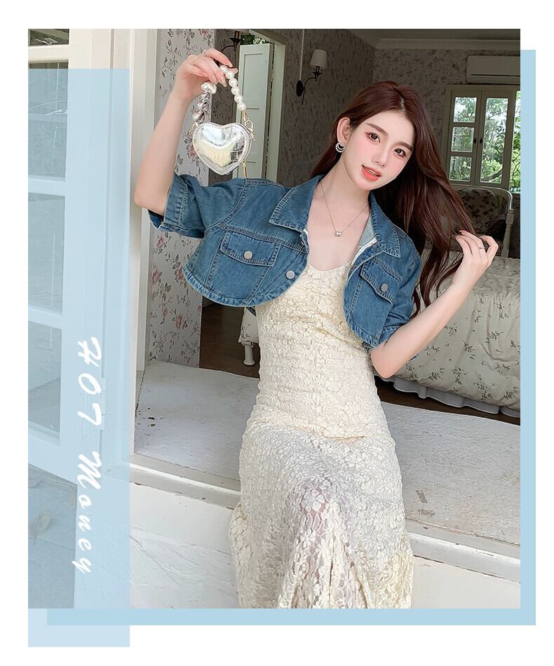 センスショートデニムジャケットハイコールドロイヤルシスタースタイルレースサスペンダードレス女性の胸の摩耗サマースーツ 夏物 yingd19056682320