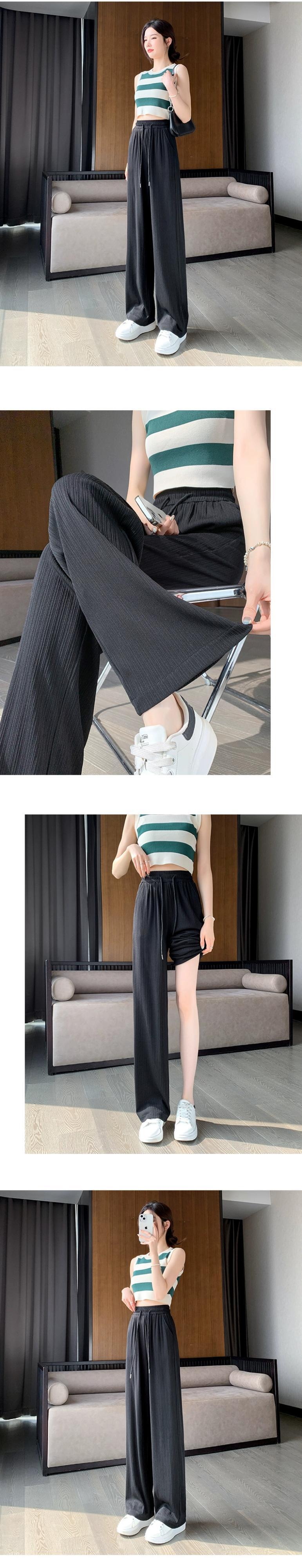 アイスシルクワイドレッグパンツ女性の 2023 新作夏の薄いセクションハイウエスト薄いストレートチューブルーズドレープカジュアルモップパンツ ハイウェスト サマー 夏物 yingd69137068169