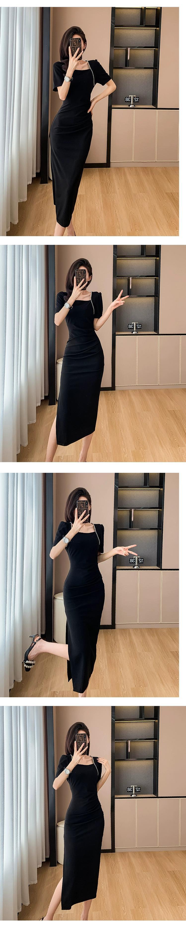 フレンチパールスクエアカラーウエストプリーツ気質ロングスカートニッチデザインハイエンドライト高級ドレス2023新しい女性 真珠 スクウェア yingd62948494918