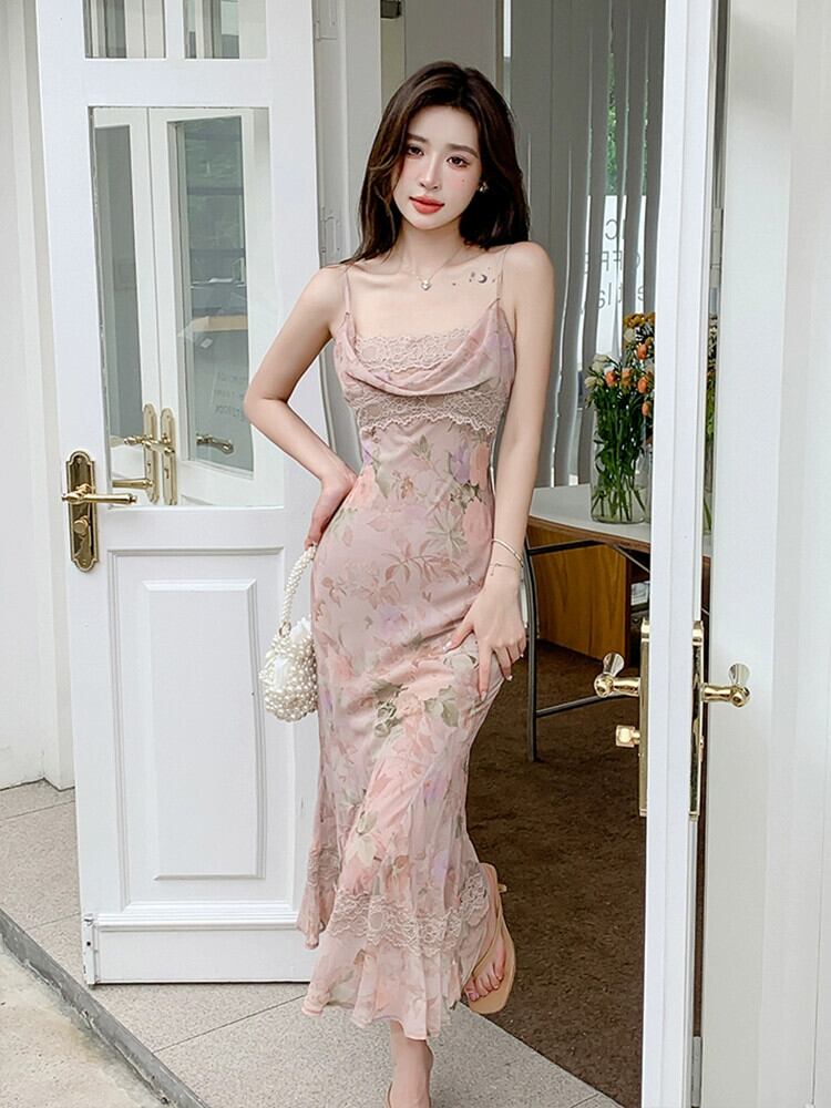 シックで美しいレトロなスカートの質感の高品質の新しい中国風の印刷サスペンダーハイエンドの絶妙なドレスの女性の夏 サマー 夏物 yingd13656078615