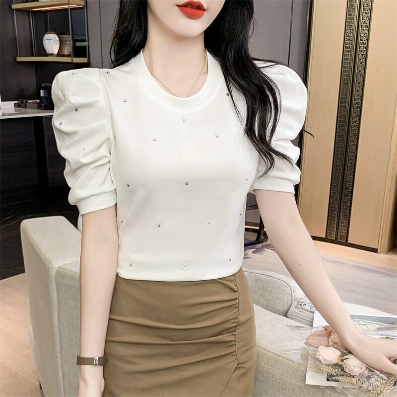 パフスリーブショルダー tシャツ女性 2023 新しい夏ニッチデザインセンスフレンチシックな甘さとスパイシーなスモールトップボトリングシャツ 大人ガーリー スウィート キュート カジュアル サマー 夏物 yingd98080901889