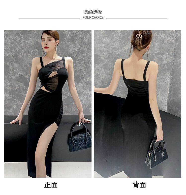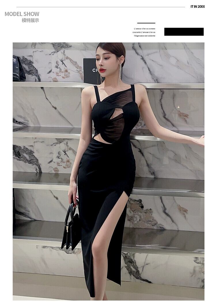 シックな甘さとスパイシーなスカートの質感のハイエンドの純粋な欲望のセクシーなメッシュ透視スリットサスペンダードレス 2023 新しい 大人ガーリー スウィート キュート カジュアル ピュア yingd11098651388