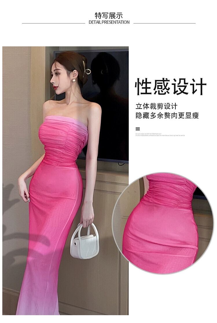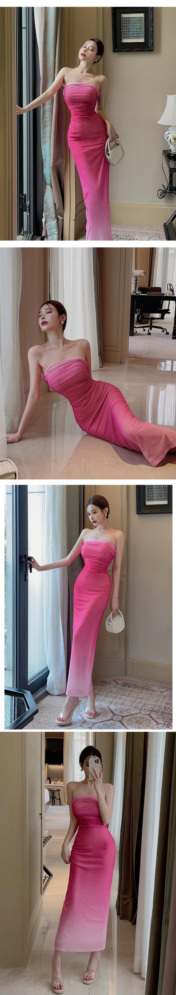 中国風のグラデーションチューブトップバッグヒップロングスカートスリムで背の高いワンショルダーハイエンド絶妙なドレス女性の夏 サマー 夏物 yingd31747478411