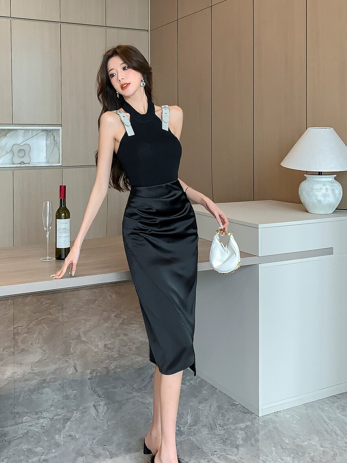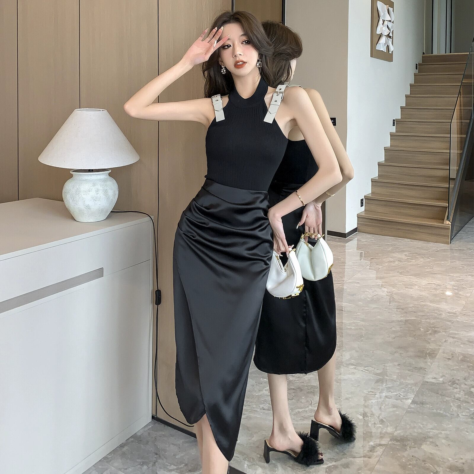 甘くてクールなスーツスカートショルダーレザースタッズぶら下げネックニットベストスカートロイヤルシスターライトなじみ風ツーピース夏 大人ガーリー スウィート キュート カジュアル サマー 夏物 yingd17253774516