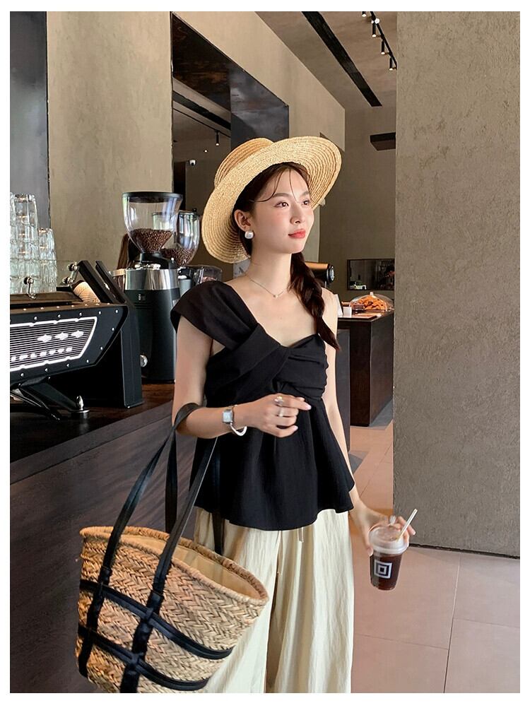 -シックで美しいトップスを着てドーパミンの終わりの感覚を着ている女性の不規則なハイエンドエインスタイルの年齢を軽減するサスペンダーシフォンシャツレディース yingd83003698000