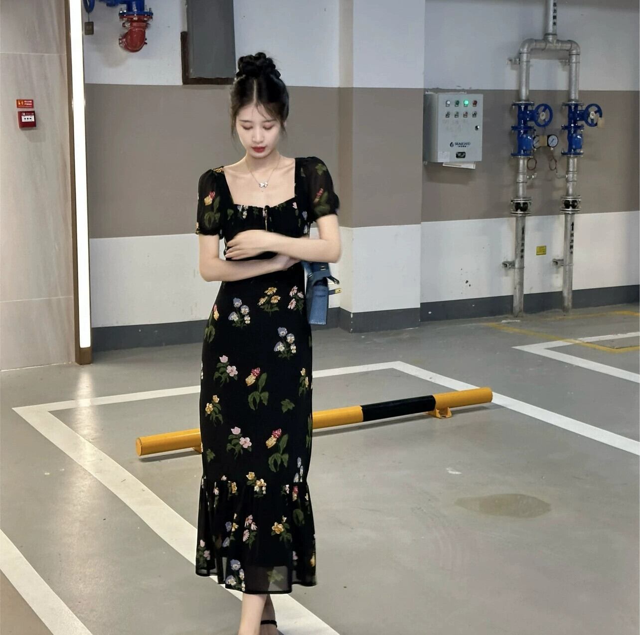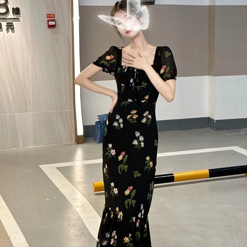 フランスのハイエンドの花柄ロングスカートウエスト痩身ドレープハイエンド気質ドレス夏の 2023 新しい女性 サマー 夏物 yingd40591164488