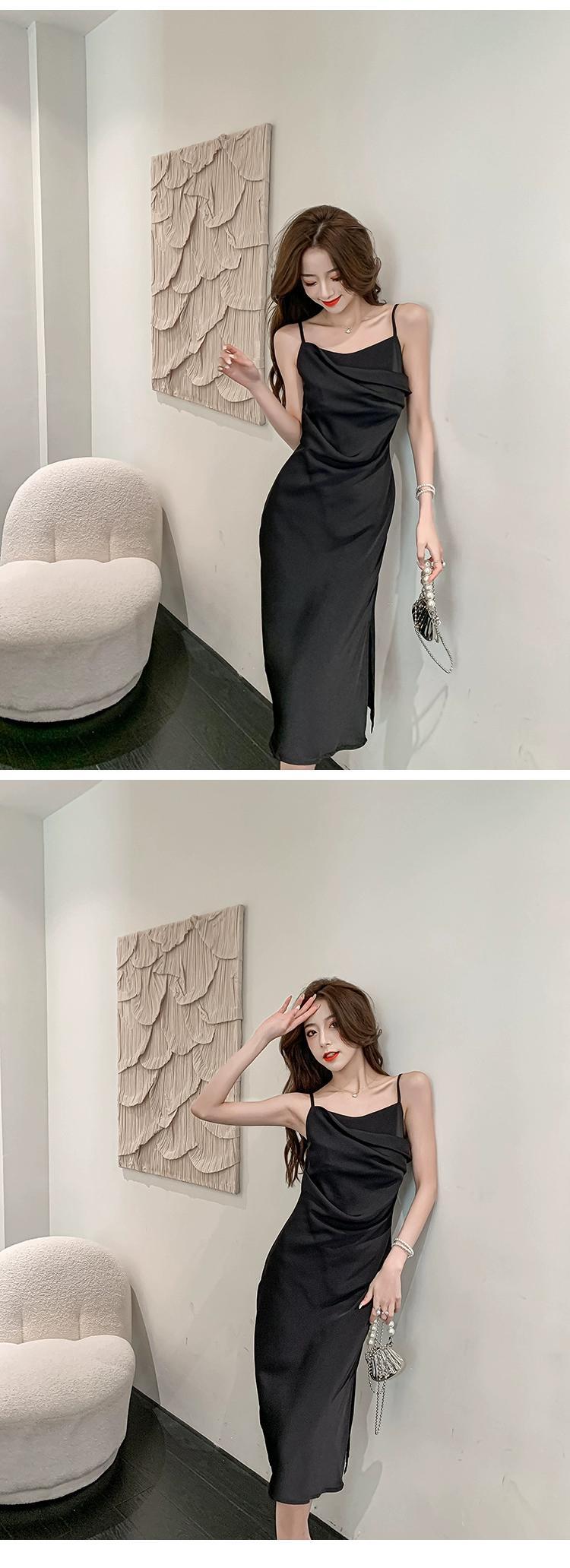 フレンチティーブレイク高級感イレギュラーセレブサスペンダースカートウエスト痩身デザイン感プリーツサスペンダードレス女性 yingd89201939228
