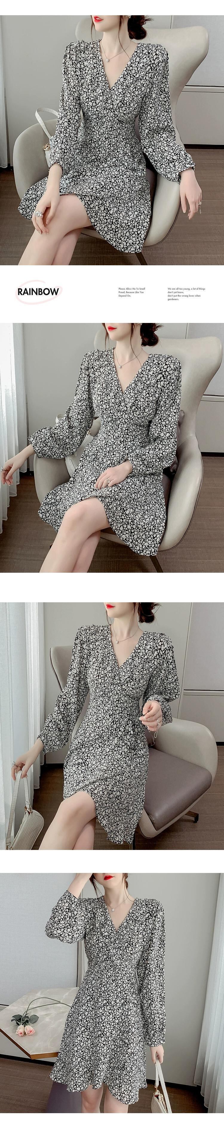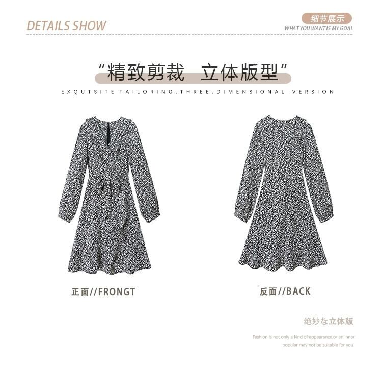 2023 秋の新レディースハイエンドウェア小さな V ネックウエスト長袖シフォン花柄ドレス女性 ロング オータム 秋物 Vネック yingd27057103869