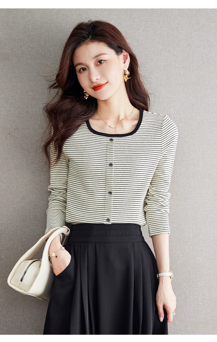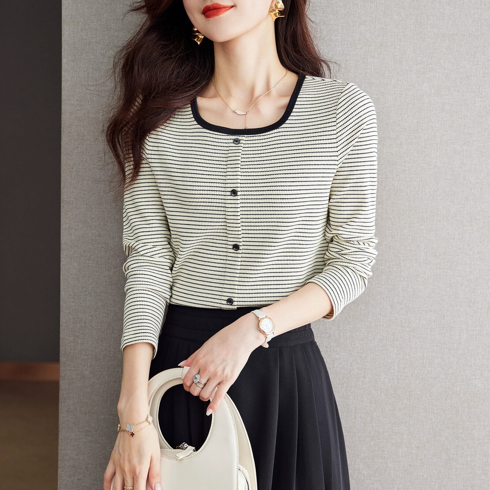 2023年秋の新作レディースコントラストストライプ長袖セーター、スリムでクール、ユニークでシックなトップス ロング オータム 秋物 yingd24579138964
