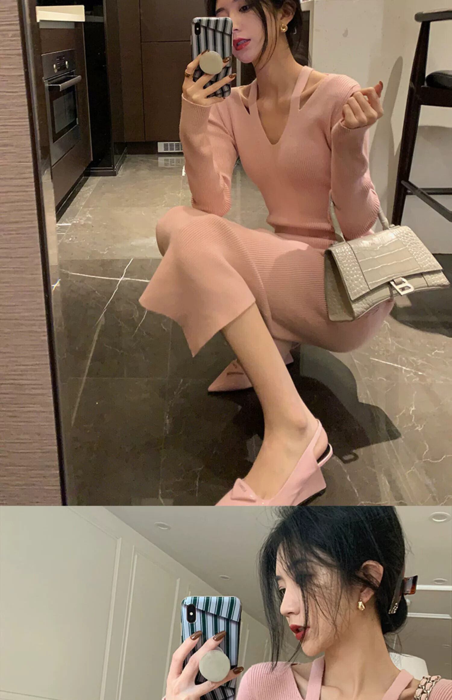 秋冬のコートとニットロングスカートの女性、スリムでエレガント、美しい小さなスカート、高級ホルターネックドレス オータム 秋物 ウィンター 冬物 yingd12917899374