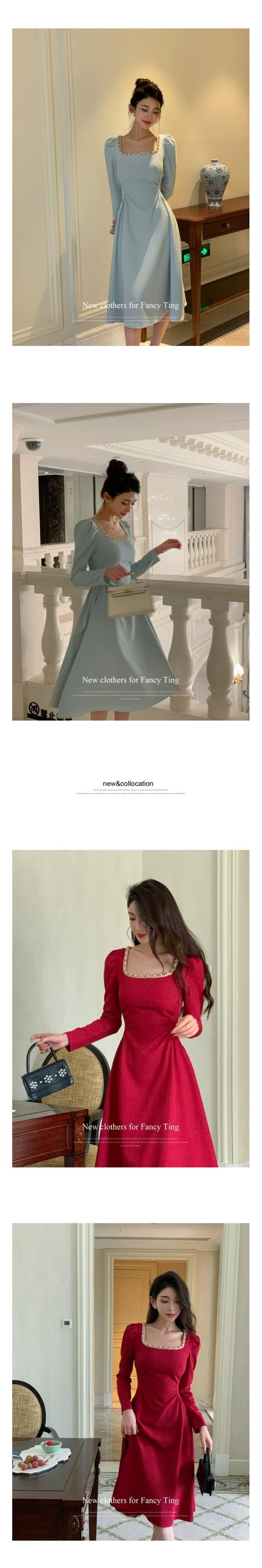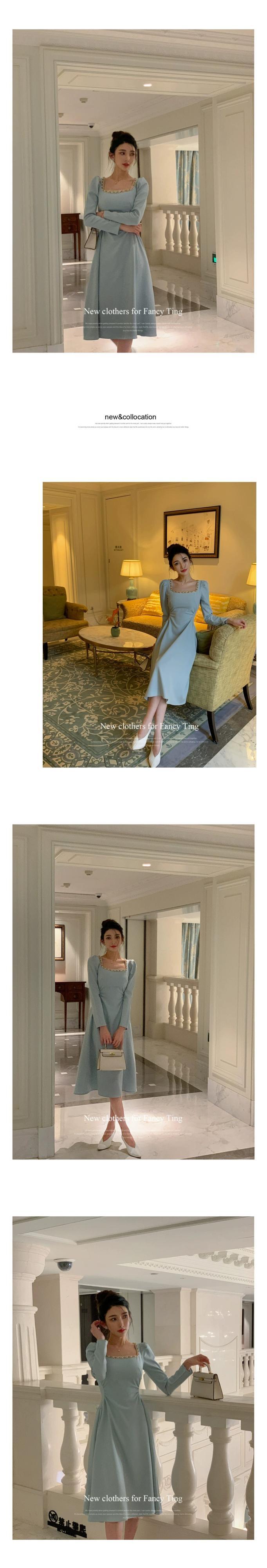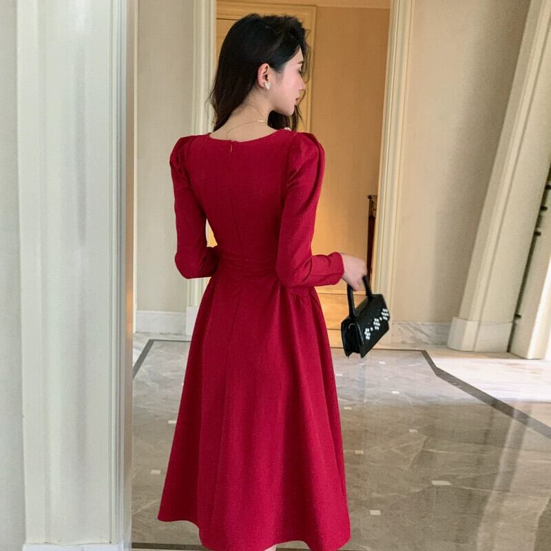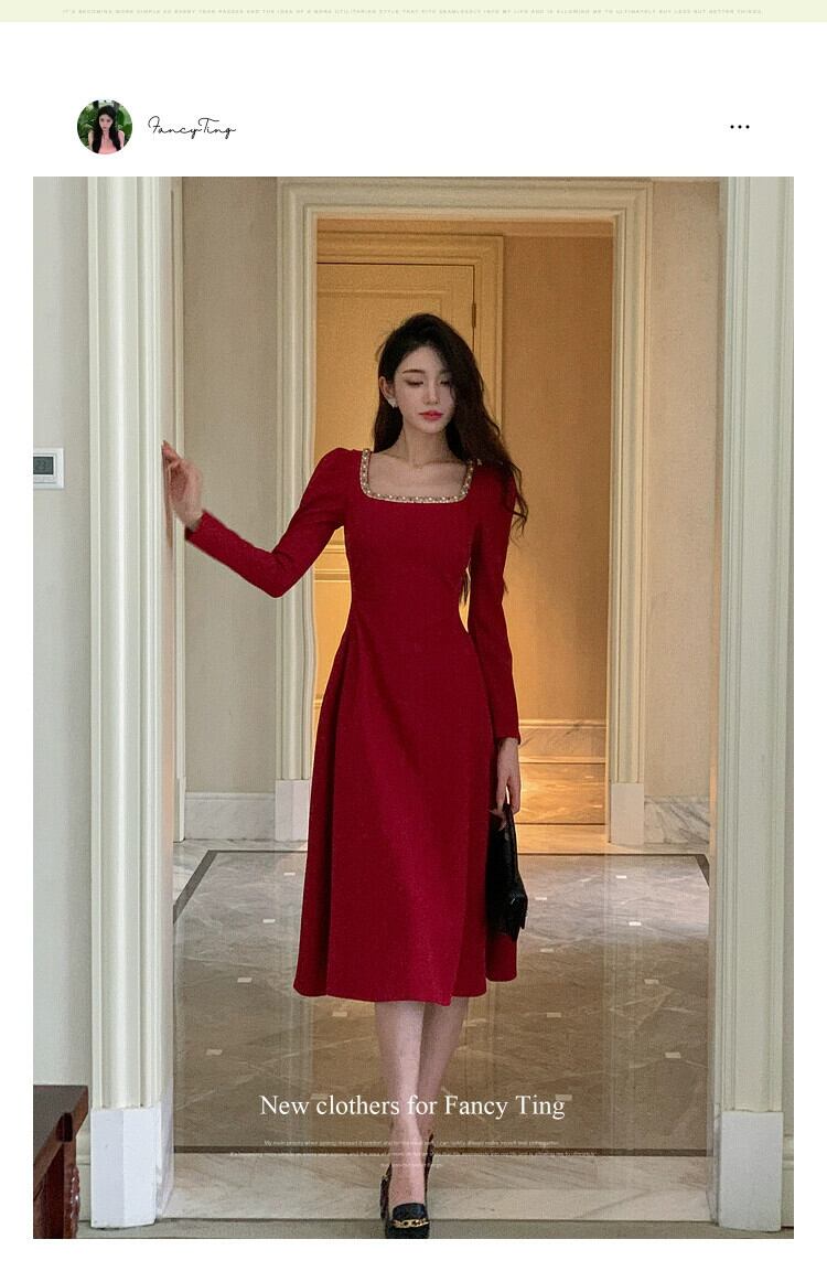 秋の女性の 2023 新しいスタイル見事なミニスカートハイエンドウエスト引き締め長袖スクエアネックハイエンドドレス高級ビッグブランド ロング オータム 秋物 スクウェア yingd52690557852