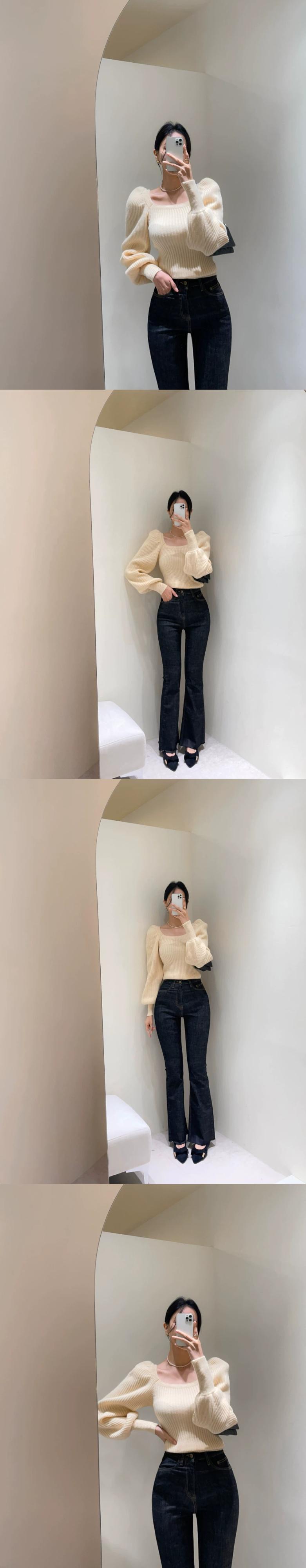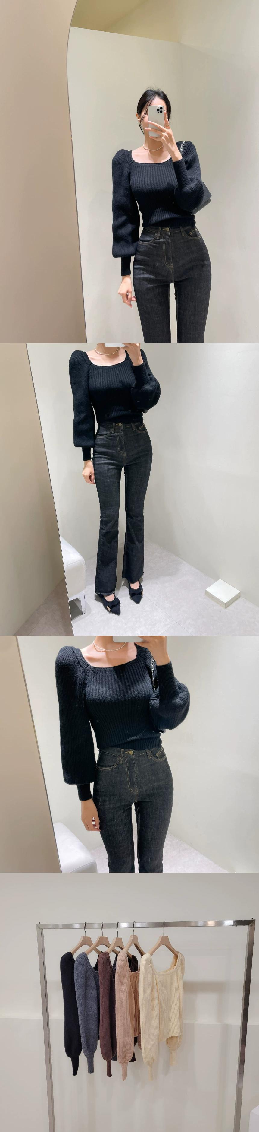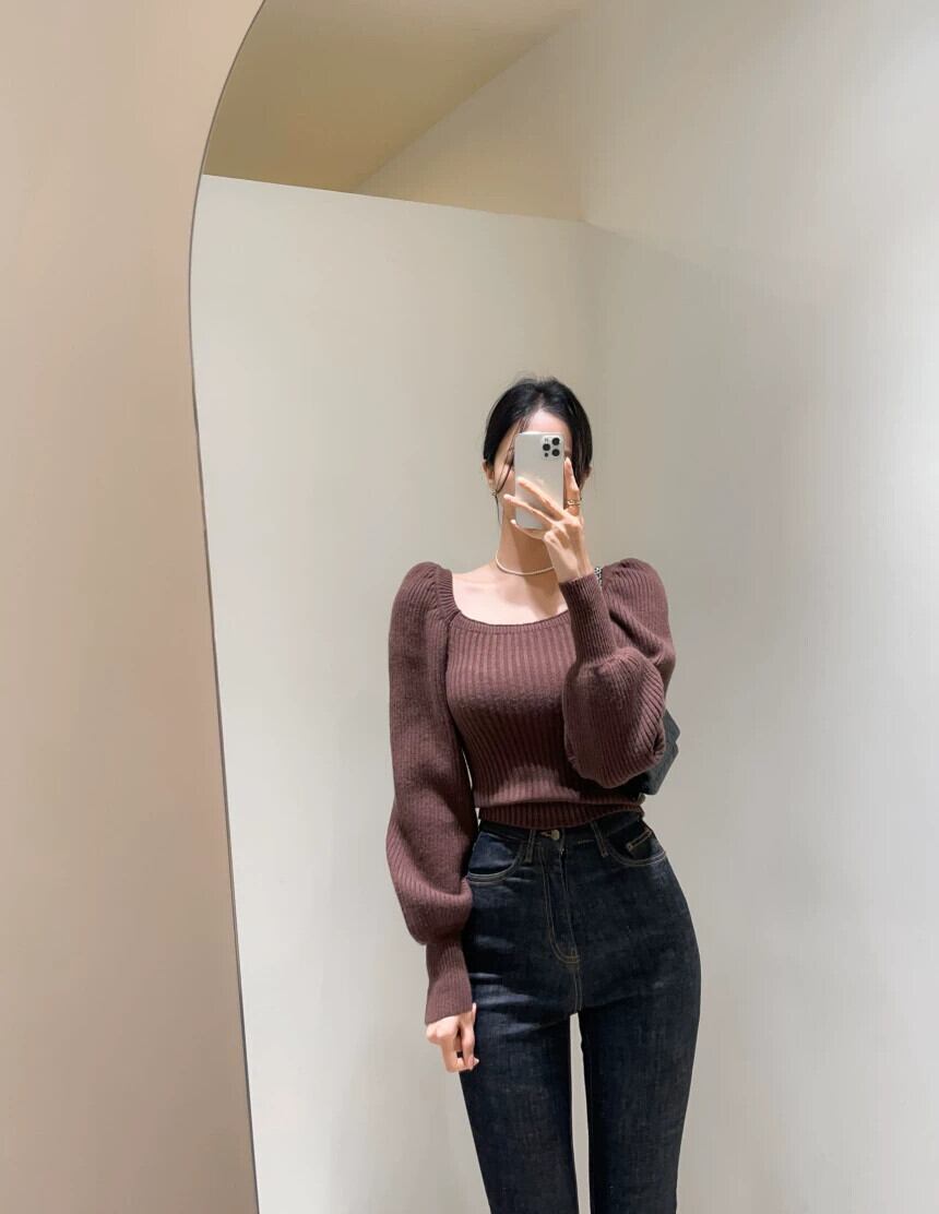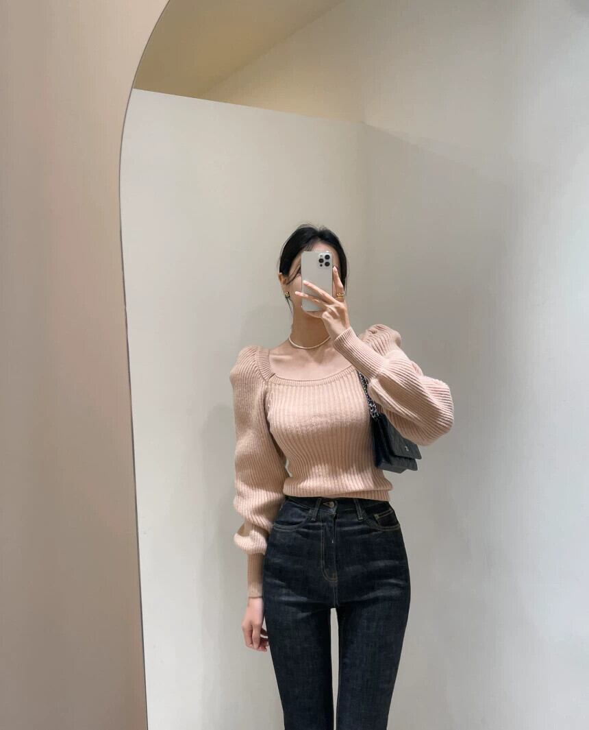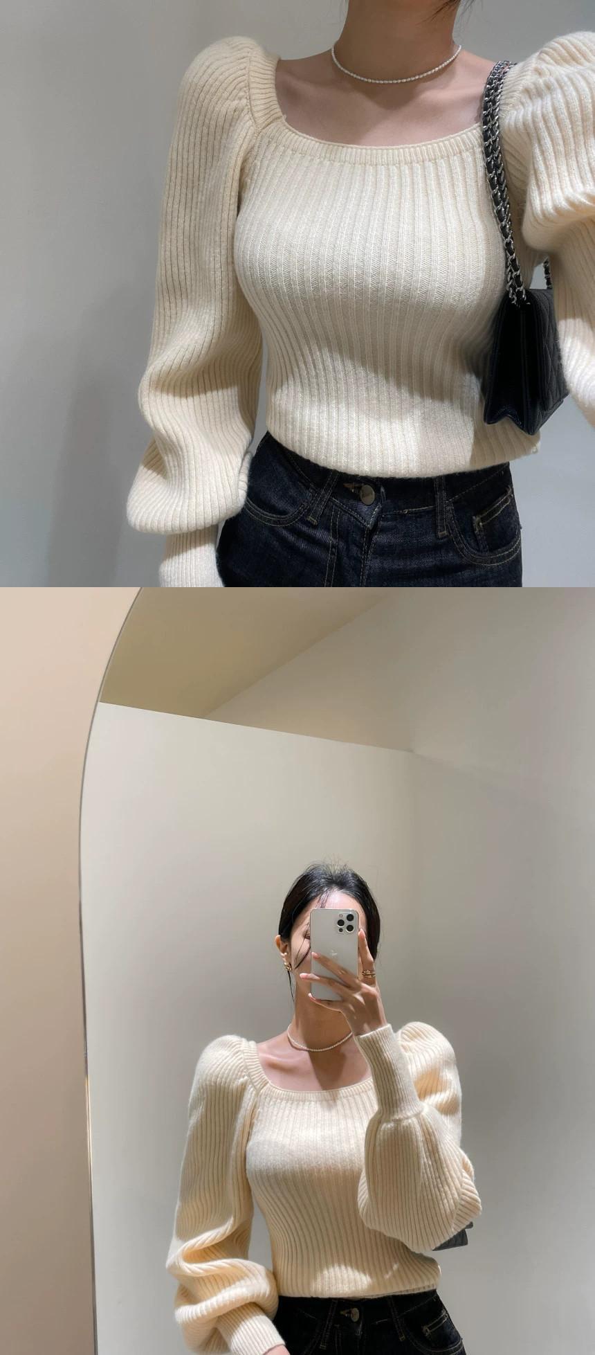 怠惰なスタイルソフトワックスセーター 2023 新スタイルウエスト痩身ランタンスリーブスクエアネックセータートップス女性の秋と冬の オータム 秋物 ウィンター 冬物 スクウェア yingd50576051236