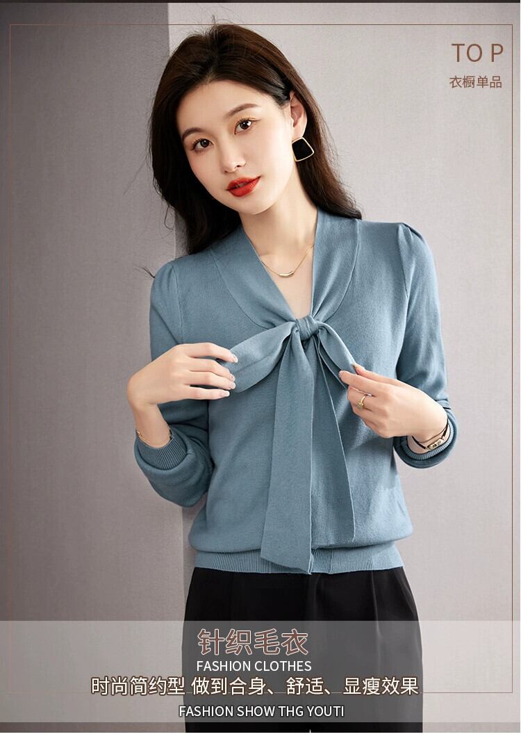 秋と冬の怠惰なスタイルソフトワックス弓セータージャケット女性 2023 新しい長袖底セーター美しいトップ ロング リボン オータム 秋物 ウィンター 冬物 yingd54842468831
