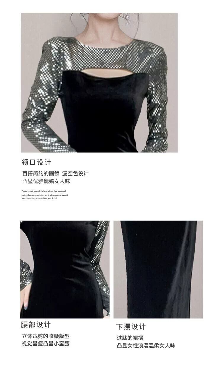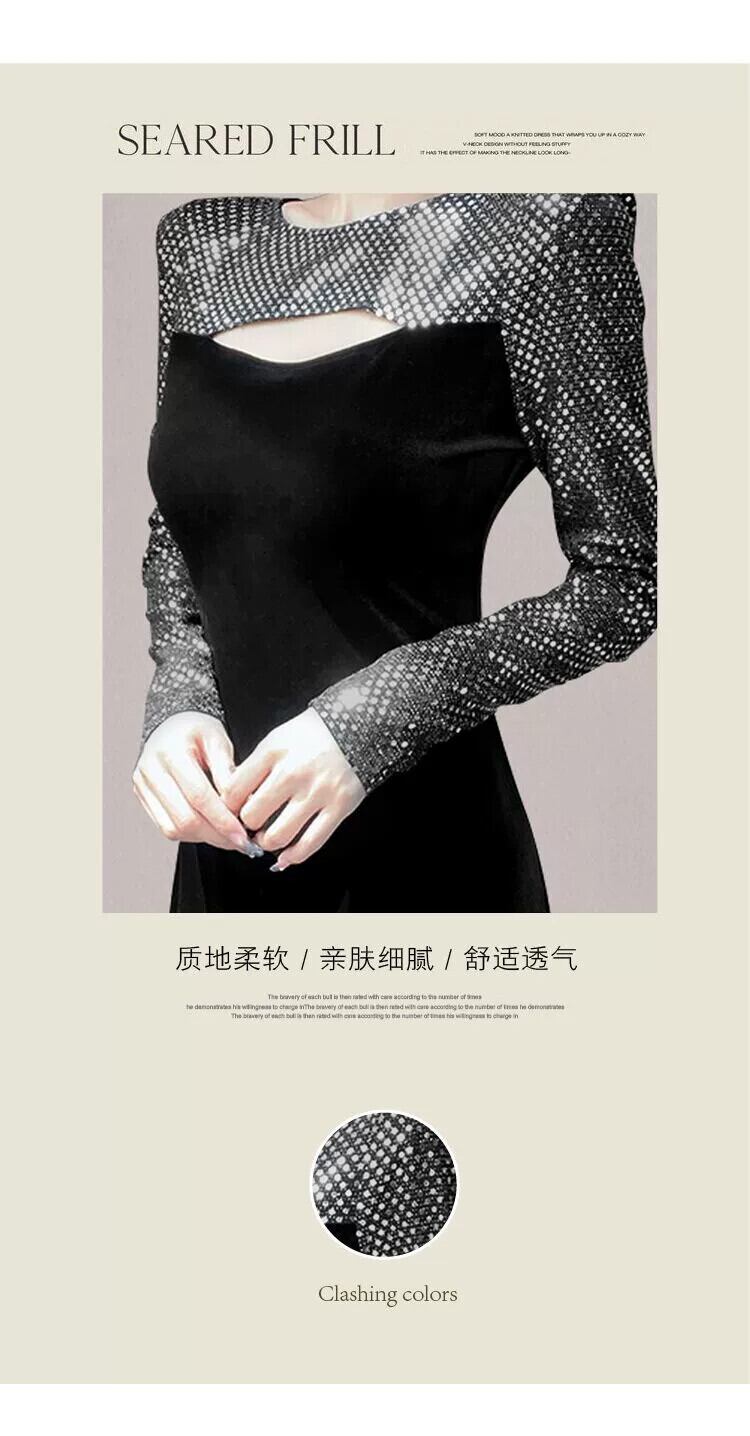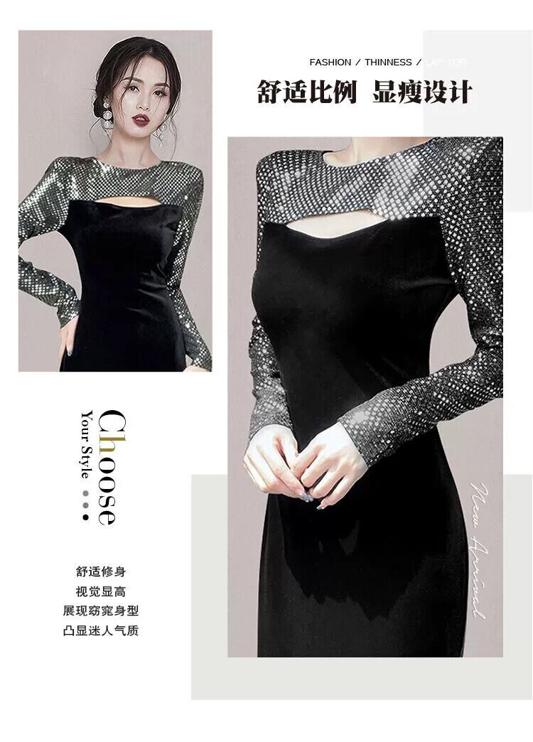 秋の女性の 2023 新しいスタイル見事な小さなスカートハイエンドスパンコールブラックレトロベルベットハイエンド絶妙なドレス オータム 秋物 yingd2706450249