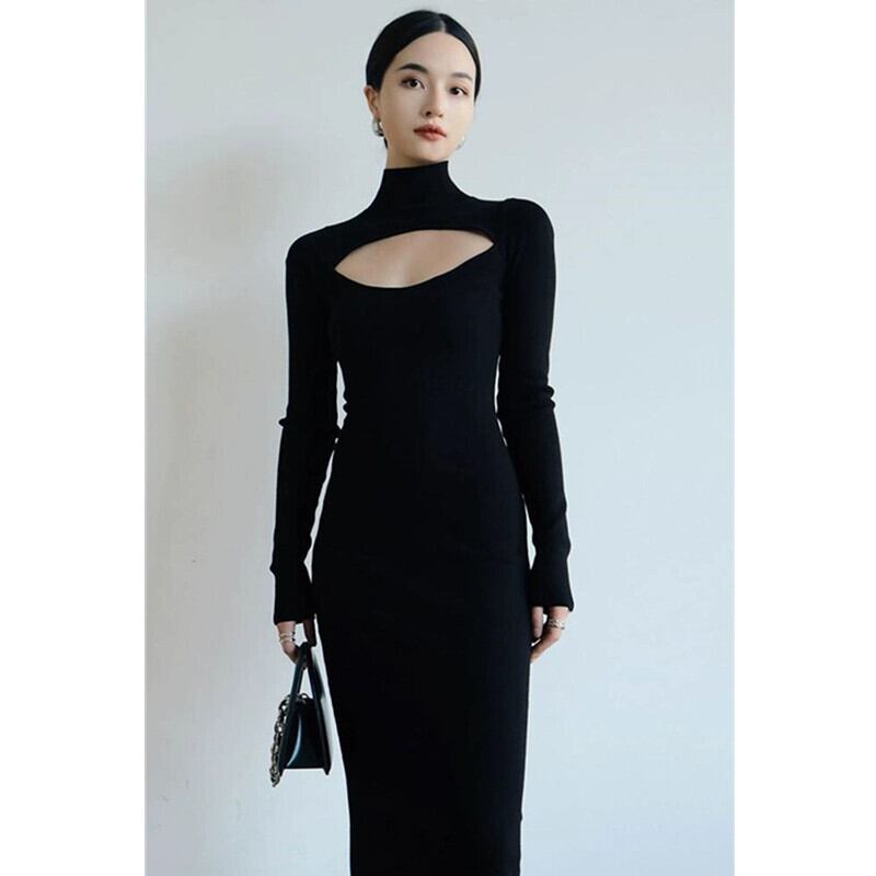 秋の女性の2023新しいスタイルの見事な小さなスカート、ハイエンド、超見栄えの良い、ウエストを締める長袖ニットドレス、ロングスカート オータム 秋物 yingd82472341994