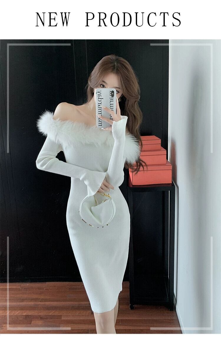 今年の人気の美しいセーター 2023 新しいスタイルのハイエンドのワンショルダーファーカラーニットドレス女性の秋冬 オータム 秋物 ウィンター 冬物 yingd30691793377