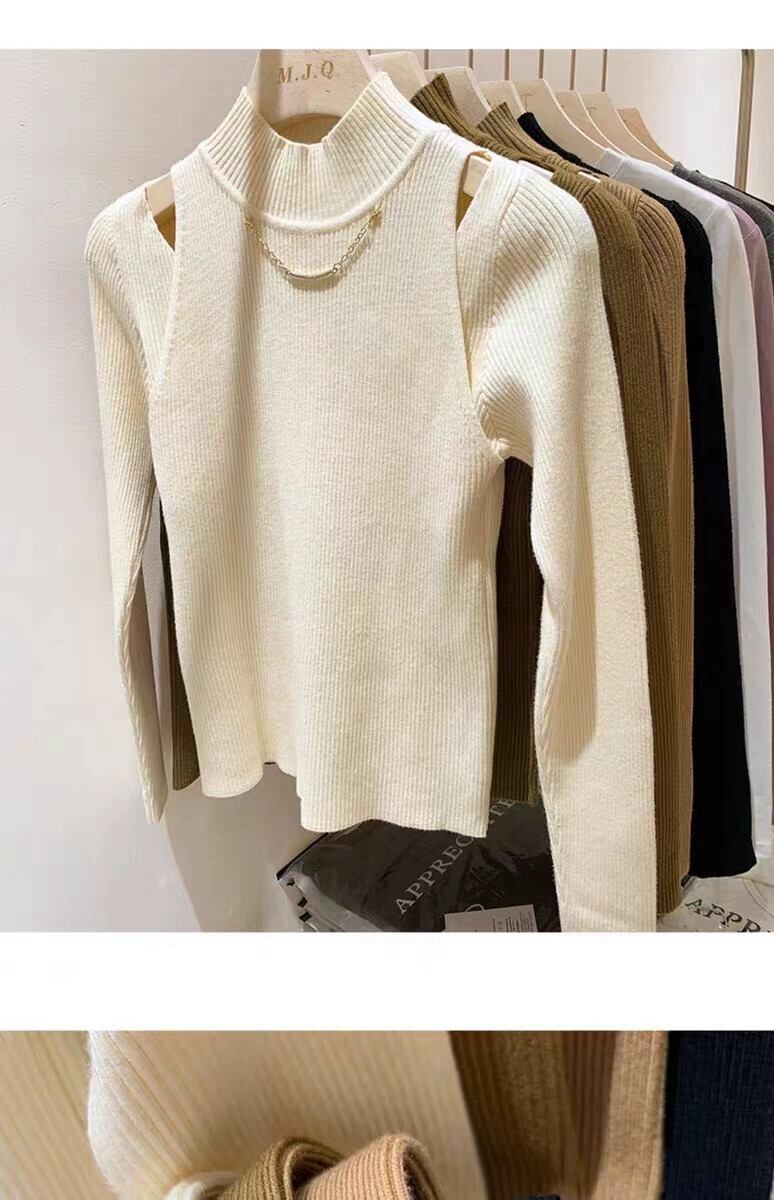 ニッチ中空ニットボトミングシャツ女性 2023 新スタイル eign スタイルオフショルダーインナーウェア東莞大朗セーター女性 yingd3457166116