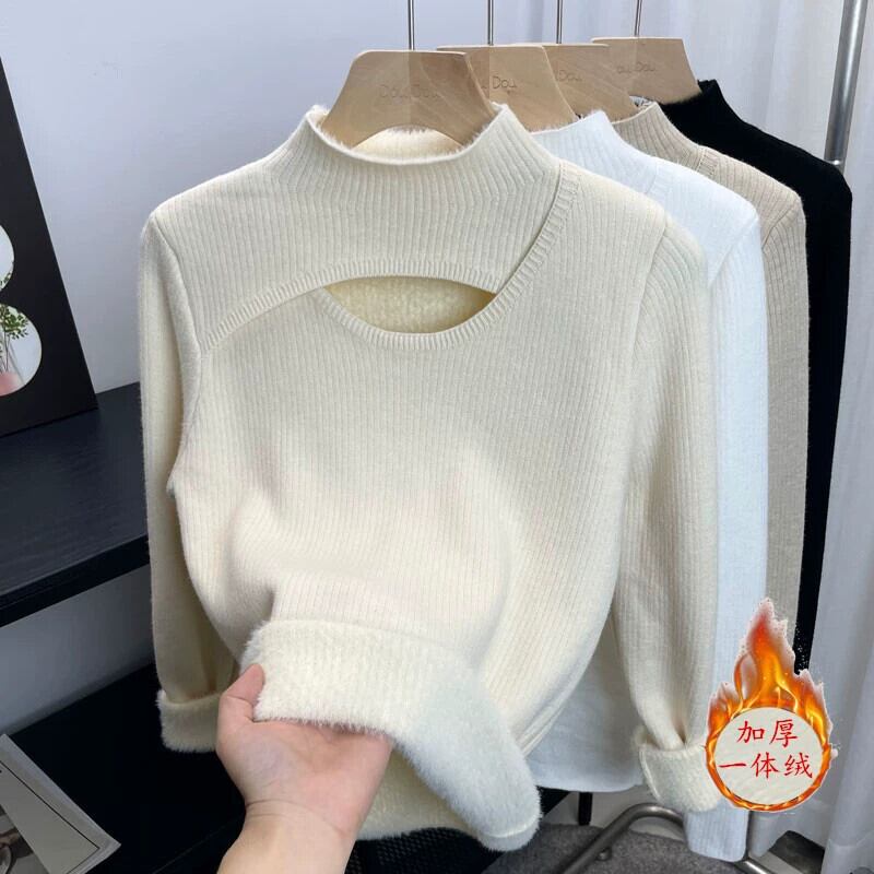 ぬいぐるみ暖かいハーフタートルネックセーター女性秋と冬 2023 新しい長袖インナー中空大朗ウールのセーターの女性 ロング オータム 秋物 ウィンター 冬物 yingd50771044067