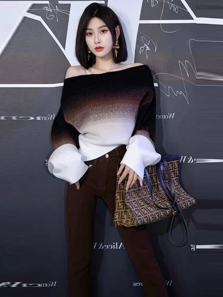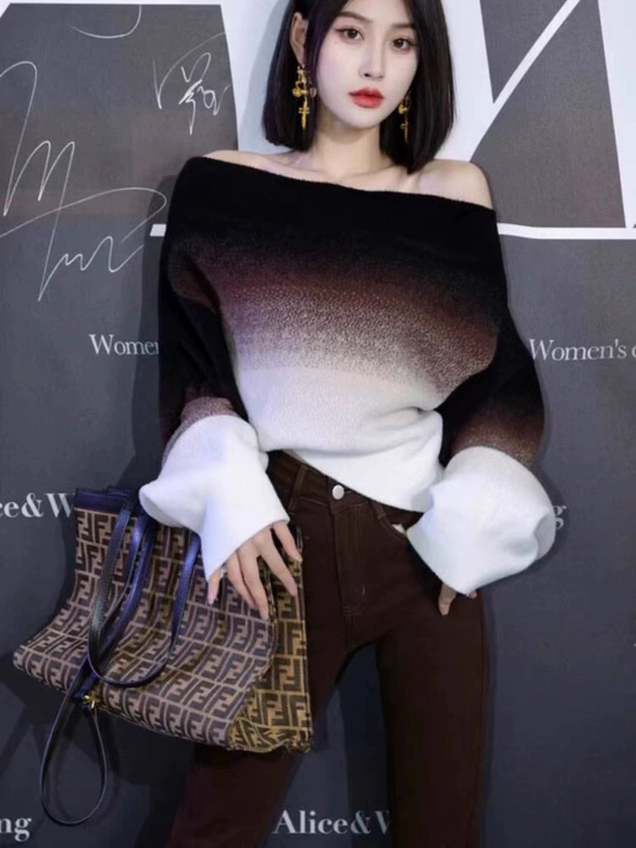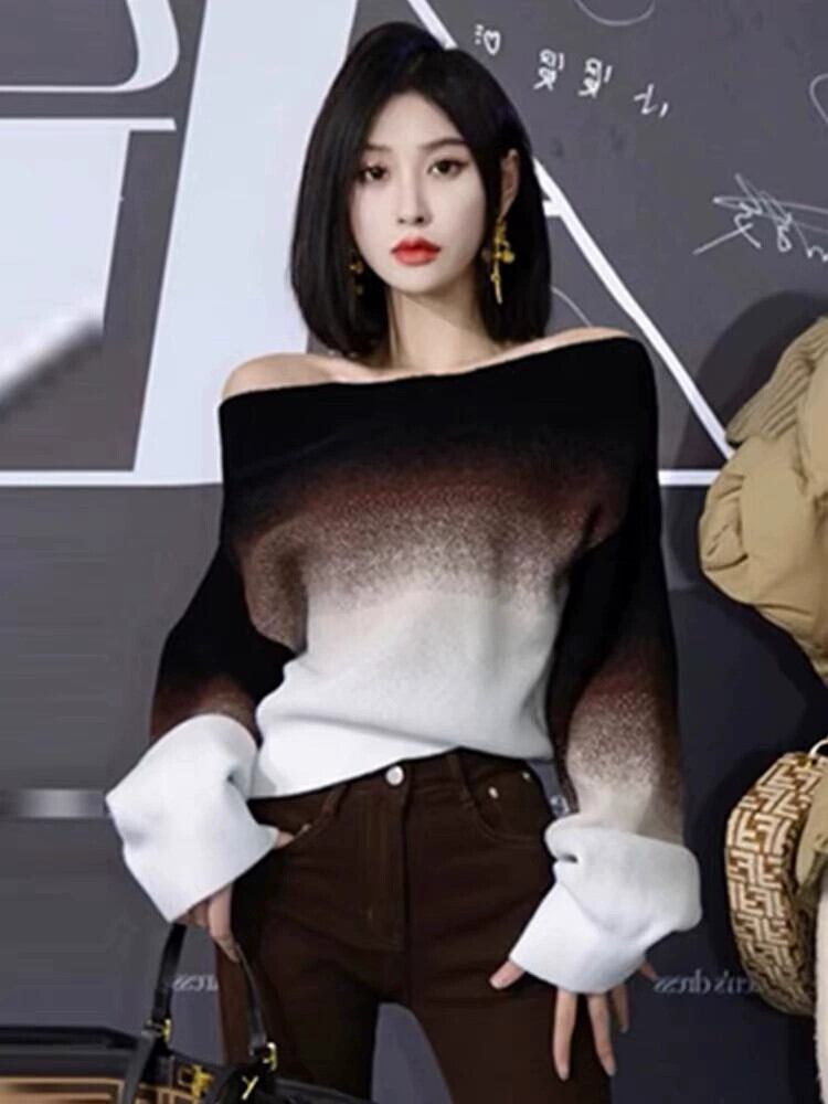 Dalang ウールのセーターの女性の秋冬 2023 新しいスタイル怠惰なスタイルソフトワックスハイエンドワンショルダーグラデーションセーター女性 オータム 秋物 ウィンター 冬物 yingd90593145722
