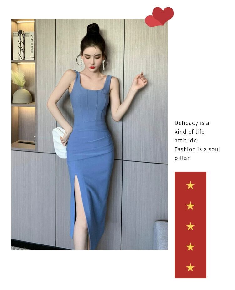 シックなウエストを締めるセクシーなヒップハグスリットベストロングスカートコールドとハイエンドシスタースタイルサスペンダードレス女性夏 サマー 夏物 yingd18107531689