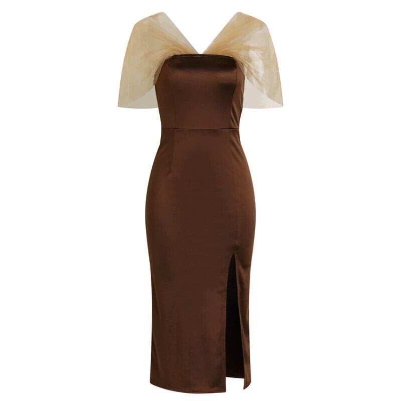 シックでハイエンドのドレスの女性の 2023 夏の新モデル Yujie 軽くて大人のスタイルのメッシュスプライシングセクシーなスリットミドル丈スカート サマー 夏物 yingd51806647566