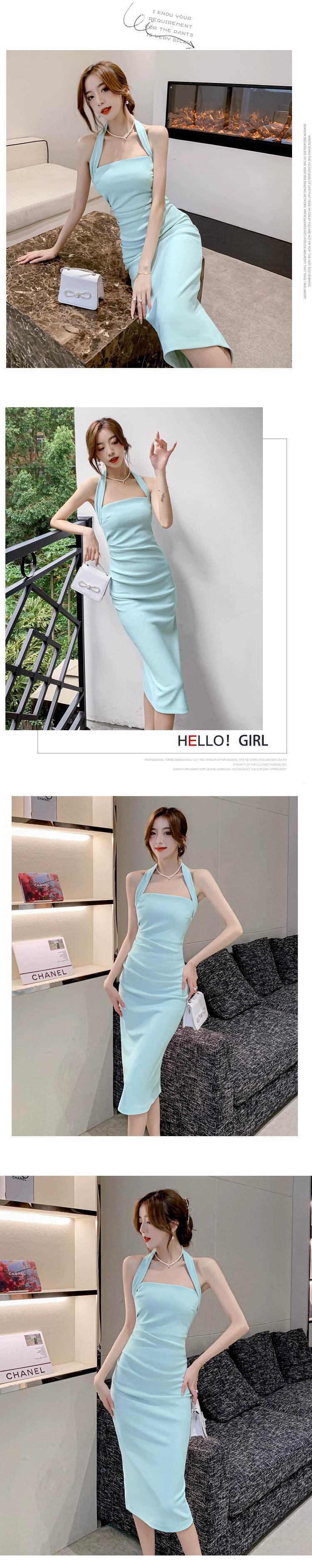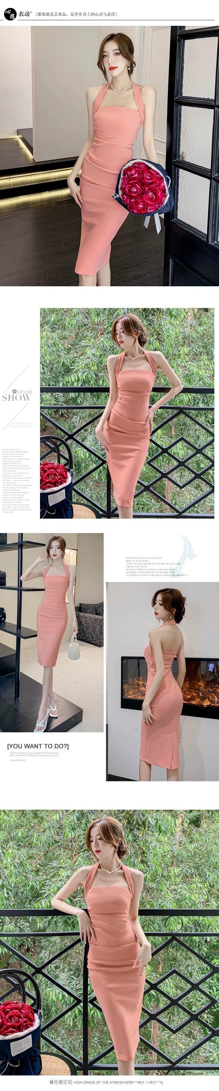 シックでユニークなデザインのニッチホルターネックスカート Yujie 軽い大人のスタイルの高級感スリムスリムヒップドレス夏 サマー 夏物 yingd90396776523