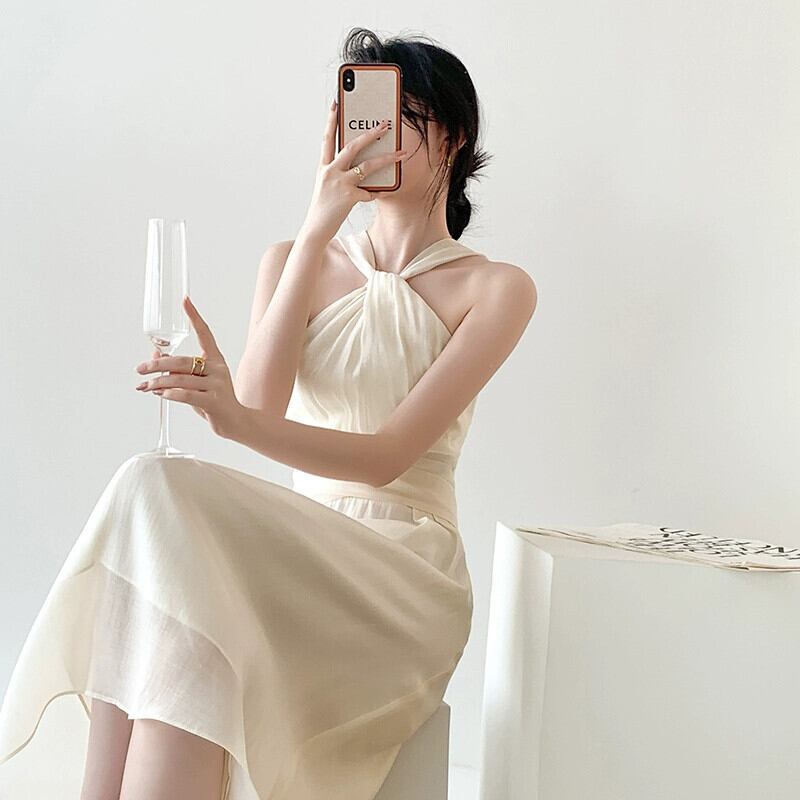 フランスの芸術的な感覚のエスト初恋スカートレトロ優しいハイエンドシフォンホルタードレス 2023 新しい女性の夏 サマー 夏物 yingd12111969438