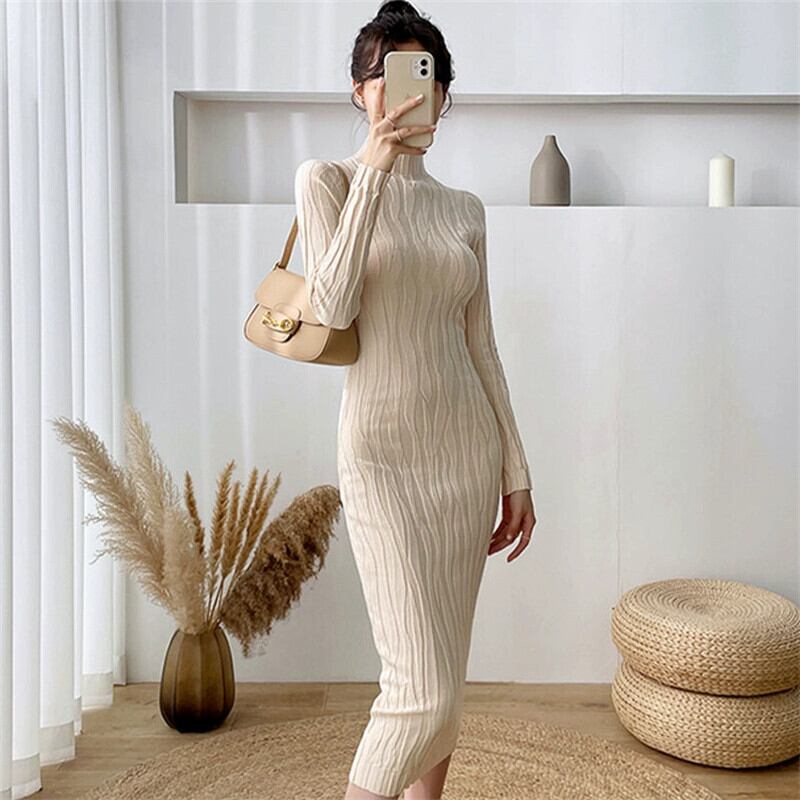 コートやロングセーターと合わせて、しっかりとした軽い高級感と高級感を演出します。冬用のスリムフィットボトムニットワンピースです。 レッド ウィンター 冬物 yingd94065581219
