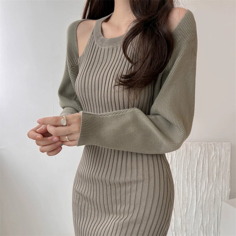 スタイルエレガントな女性ツーピースセット、ハイエンド女性のコールドスタイル秋スタイル気質女神スタイルニットドレス女性 オータム 秋物 yingd81366766178