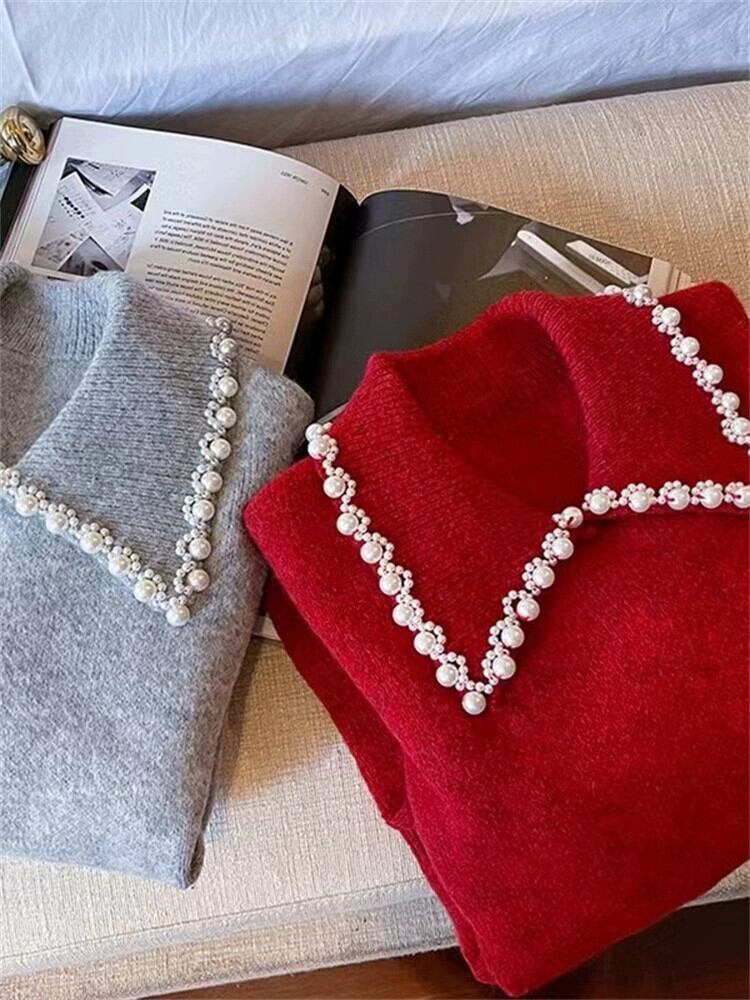 フランスのハイエンドの超素敵なセーターの女性の秋と冬のニッチデザイン長袖セーターソフトでワックス状のトップ ロング オータム 秋物 ウィンター 冬物 yingd34818494135