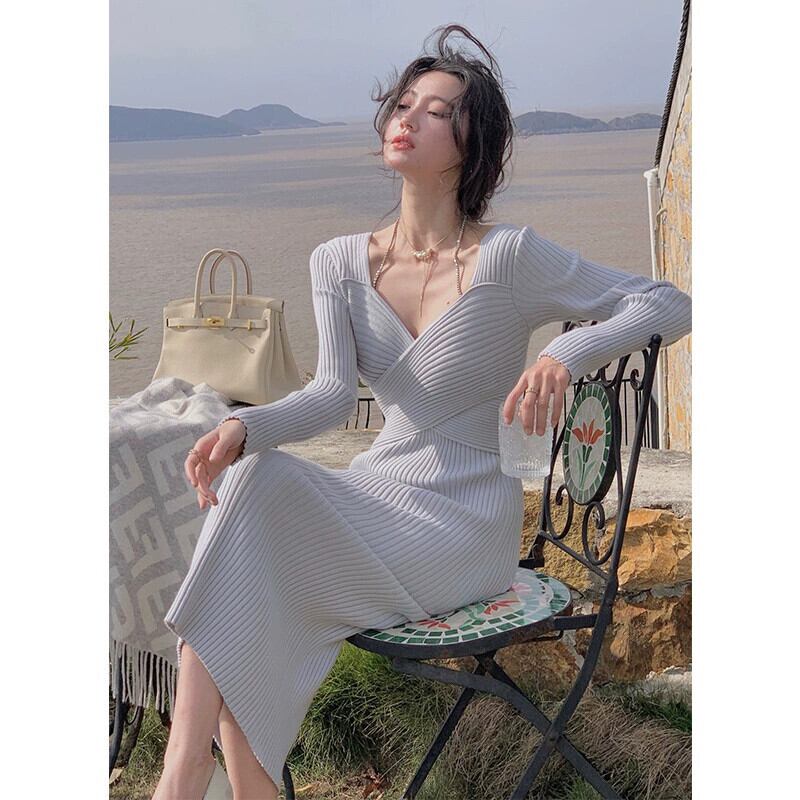 冬のスカートとコートはウエストを絞って細く見せます。女神のようなシックで個性的なインナーニットセータードレスです。 ウィンター 冬物 yingd72249123885