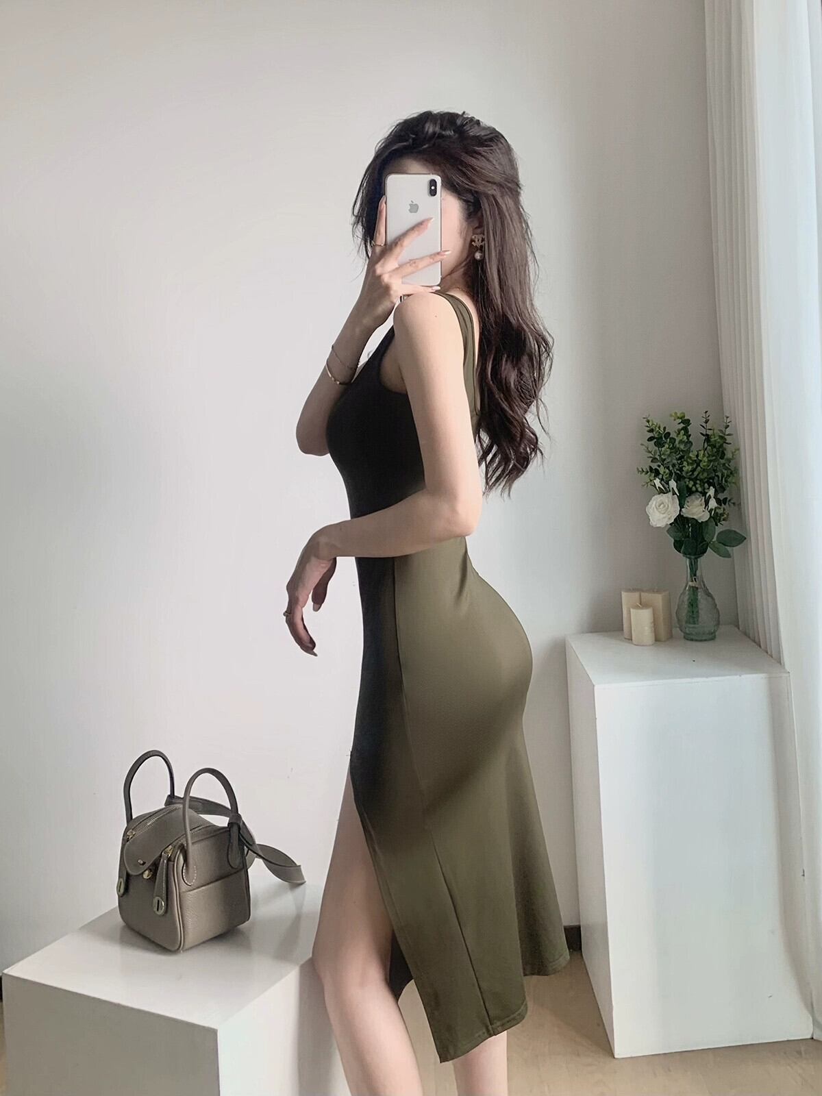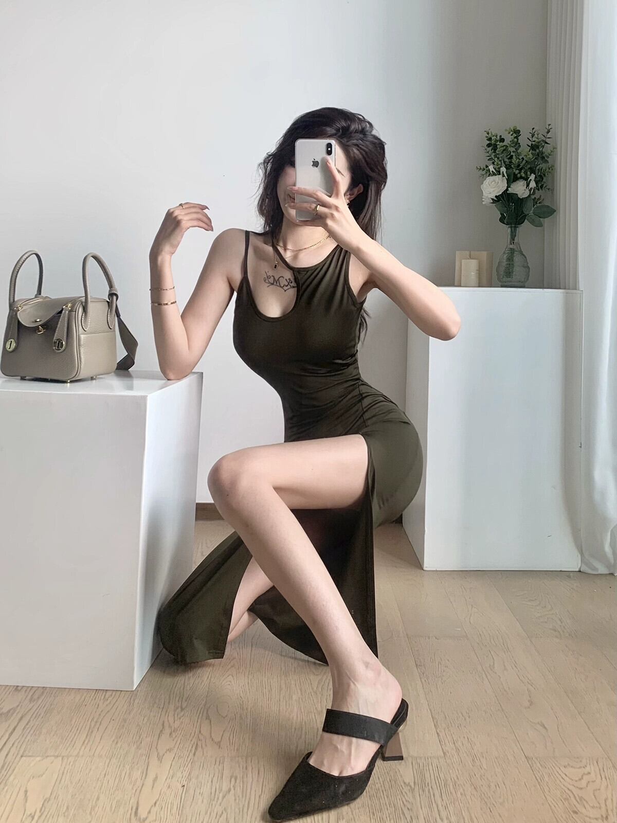 シックでユニークなスカート、エレガントで洗練されたスタイル、中空のセクシーなスリットサスペンダードレスの女性の2023夏服 サマー 夏物 yingd76959021142