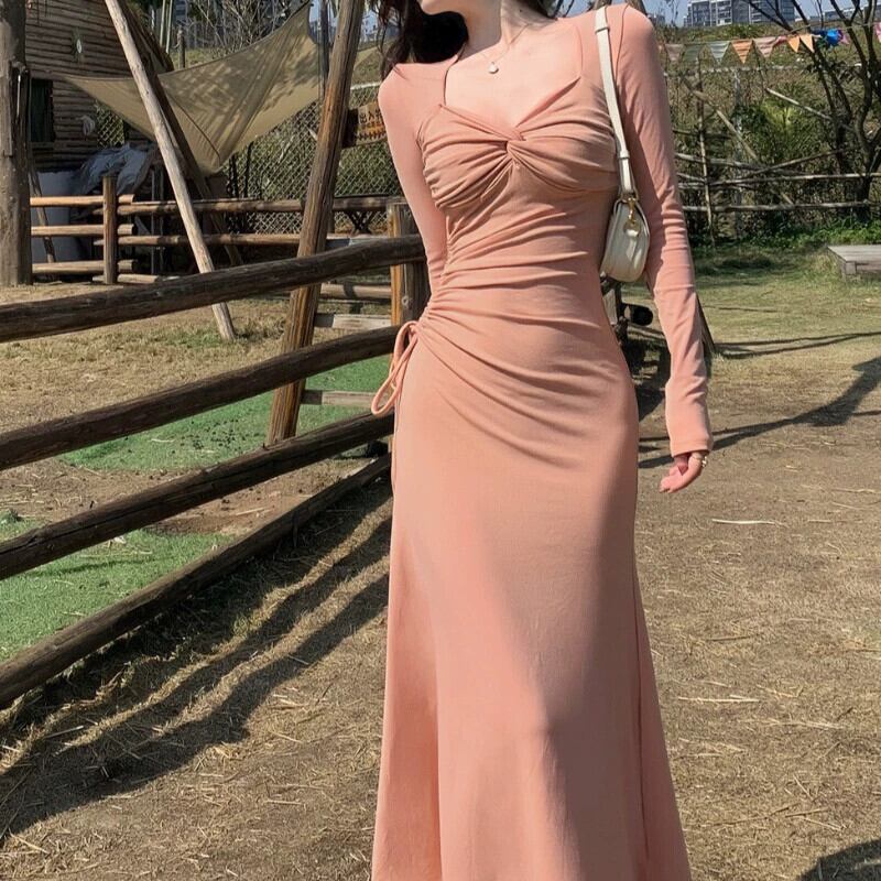 春のドレスの女性 2023 新スタイルフレンチティーブレークデザイン巾着ツイストティースタイルシックなドレスの女性 スプリング 春物 yingd56132161660