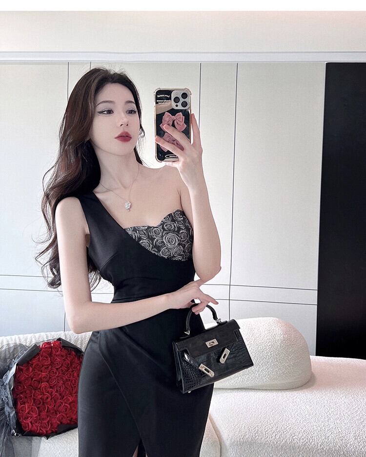 フランスのレトロな気質、社交界のリトルブラックドレス、ソルティスタイル、軽くて洗練されたスタイル、セクシーなスリット、ハイエンドの絶妙なドレス yingd94350839682
