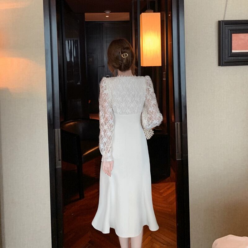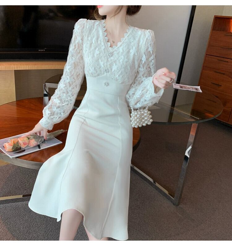 春の女性の 2023 新しいスタイルのシックでユニークなデザインのレーススプライシングハイエンドの絶妙なドレスフィッシュテールロングスカート スプリング 春物 yingd42707421674