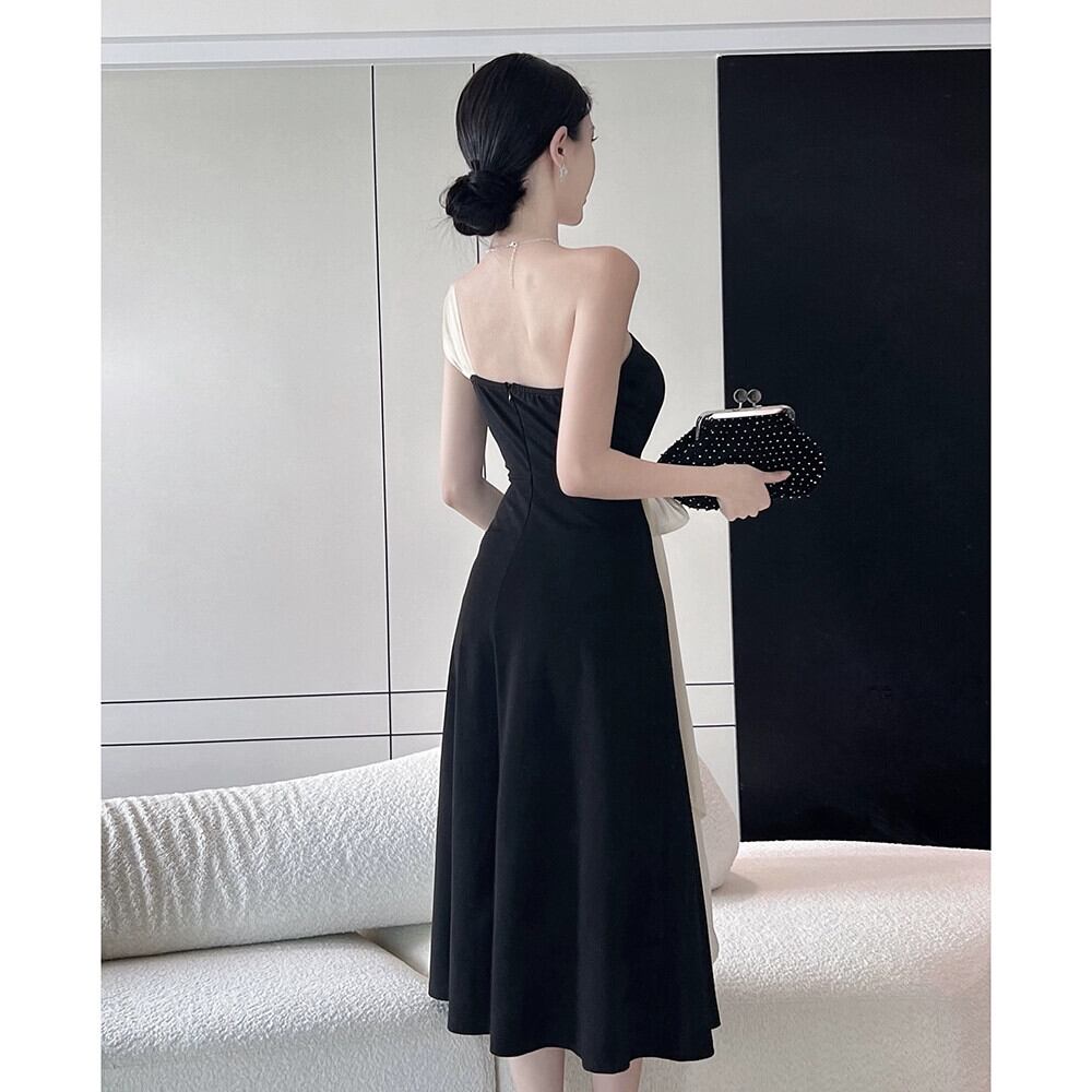 シックでユニークなデザインの斜めワンショルダーコントラストカラードレス2023新しいソルトスタイルは軽くて大人の夏のロングドレスを着ます サマー 夏物 yingd7159722169