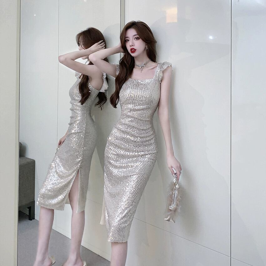 シックでユニークなスカート、エレガントで大人のスタイル、レディライクなデザイン、スパンコールサスペンダー、ハイエンドの絶妙なドレスの女性 yingd42935332406