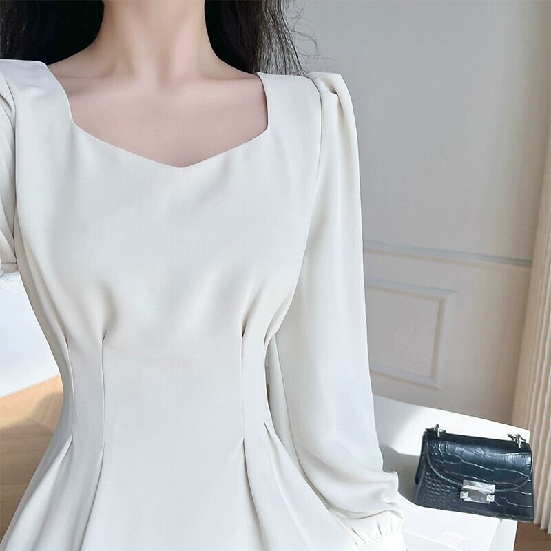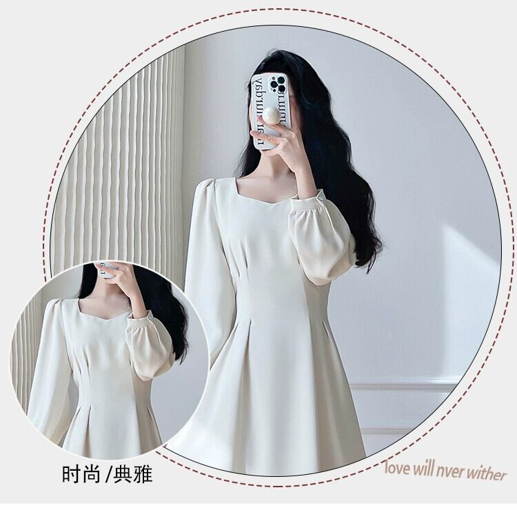 春の女性の 2023 シックでユニークなスカートフレンチファーストラブリトルホワイトドレス長袖スクエアネックホワイトドレス ロング スプリング 春物 スクウェア yingd11325090854