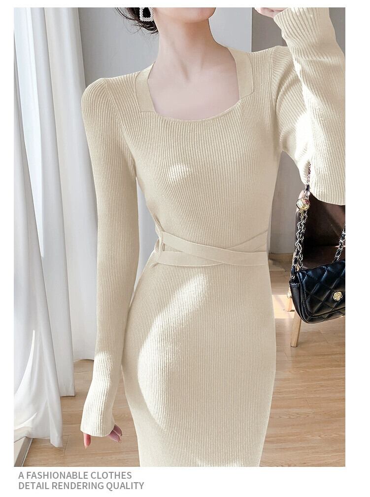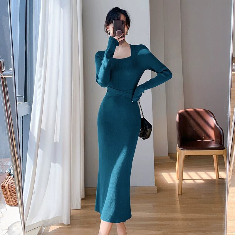 ミッドレングスの膝上セータードレス秋と冬コートスタイルスリムフィットハイエンドエレガントな女性ニットドレス女性 オータム 秋物 ウィンター 冬物 yingd21997987579
