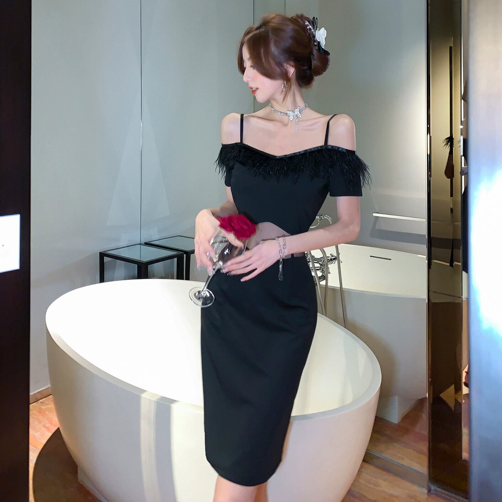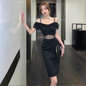 シックでユニークなデザインの甘くてスパイシーなフィッシュボーンドレス女性のウエストを細くするエレガントな女性のオフショルダーサスペンダーリトルブラックドレス 大人ガーリー スウィート キュート カジュアル yingd11985650315