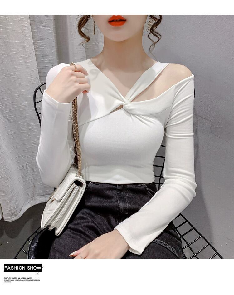 コールドスタイルのユニークでシックなヨーロッパトップス 2023 新デザインニッチオフショルダー長袖ボトシャツ tシャツ女性 ロング ヨーロピアン yingd72630912554